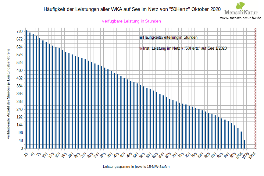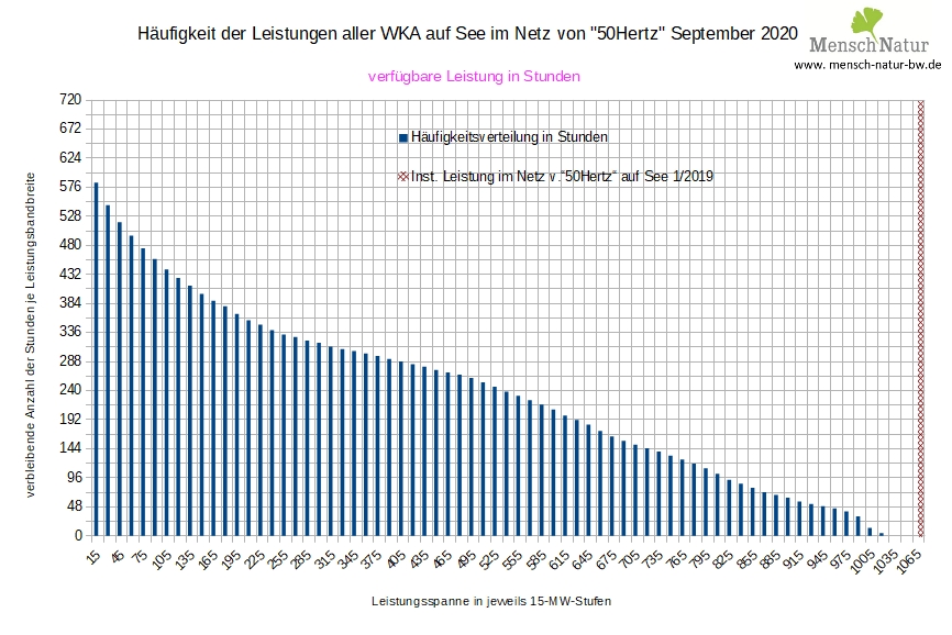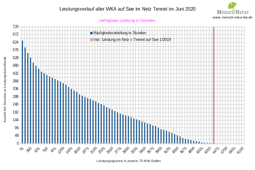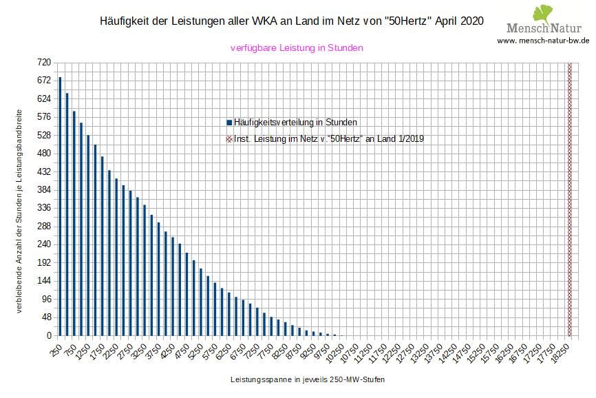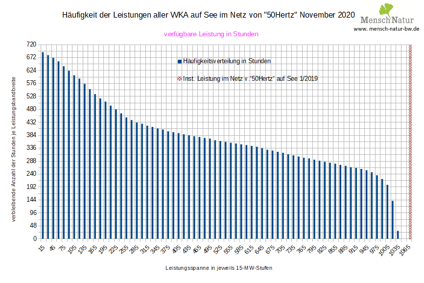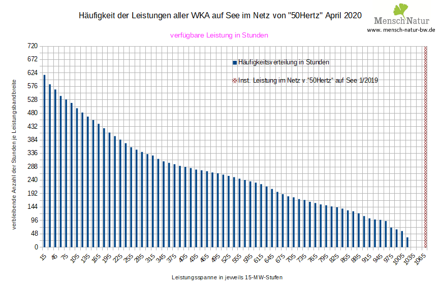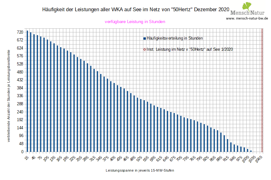 Häufigkeitsverteilung über die monatliche Gesamtstunden mit verfügbaren Leistungsstufen in Stunden Land / See