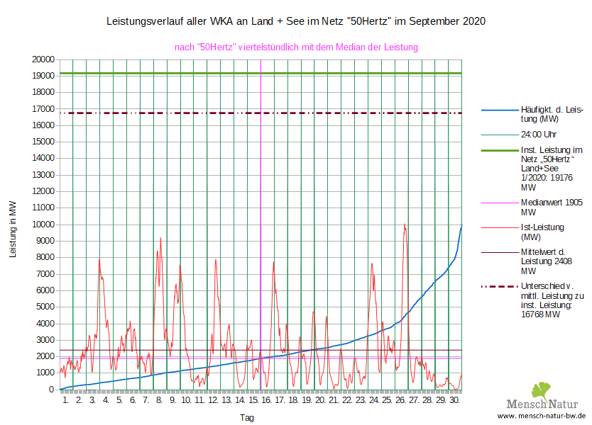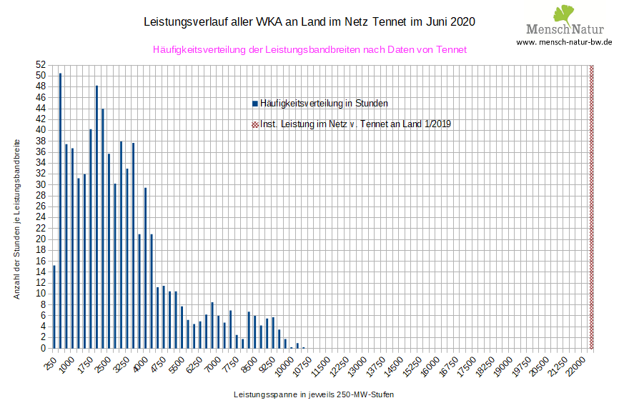 Analyse der Leistungsverteilung von Windenergie zur installierten Leistung Land + See