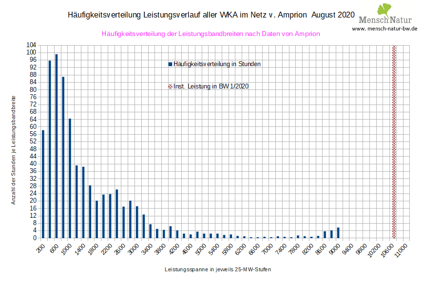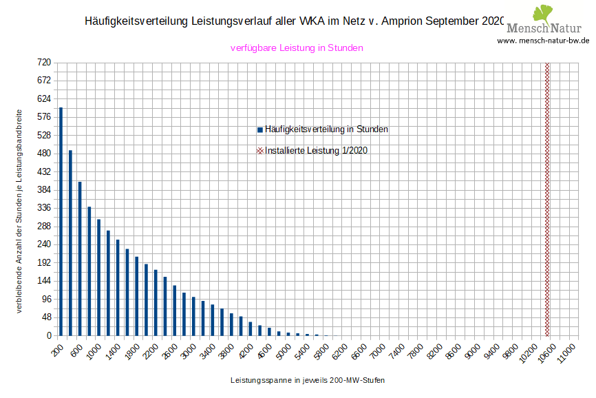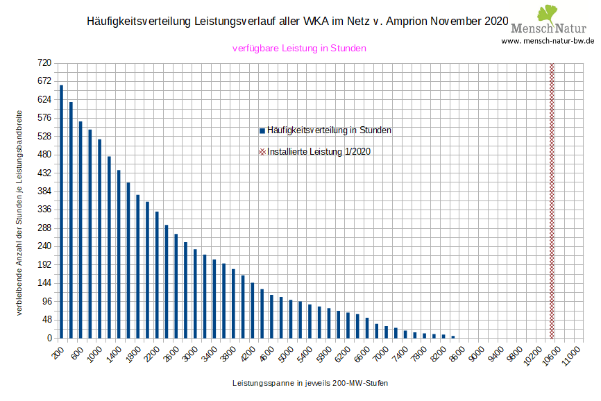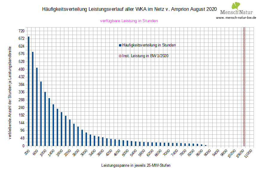 Häufigkeitsverteilung über die monatliche Gesamtstunden mit verfügbaren Leistungsstufen in Stunden