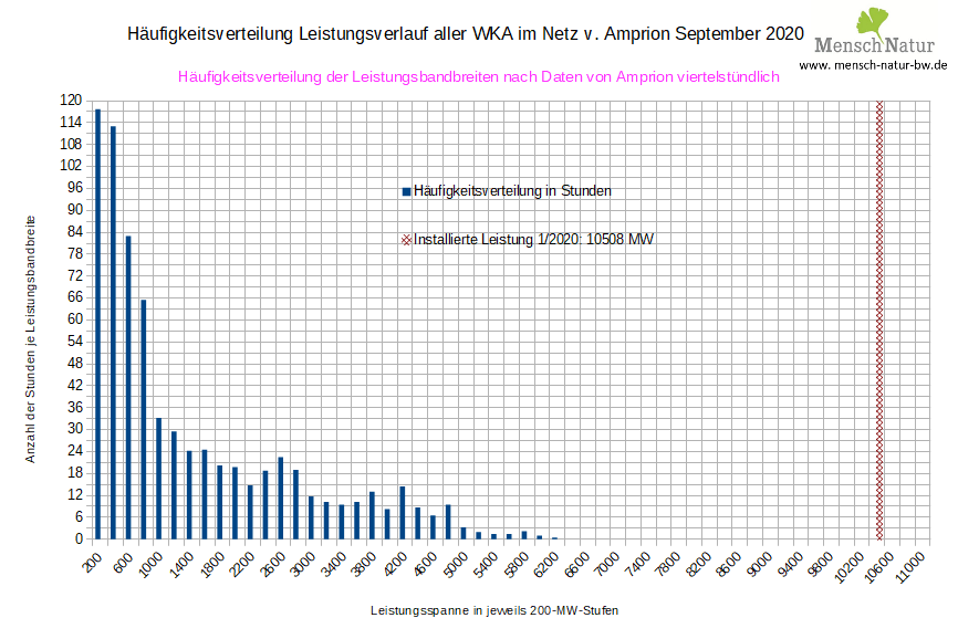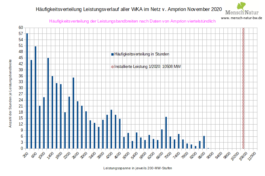 Analyse der Leistungsverteilung von Windenergie zur installierten Leistung