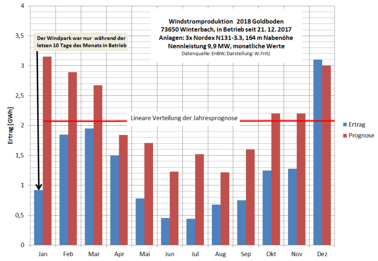 Prognose wurden im Mai 2017 erreicht. Die Ertragsprognosen, die auf dem Windgutachten basieren, sind zu hoch. Bezogen auf die
