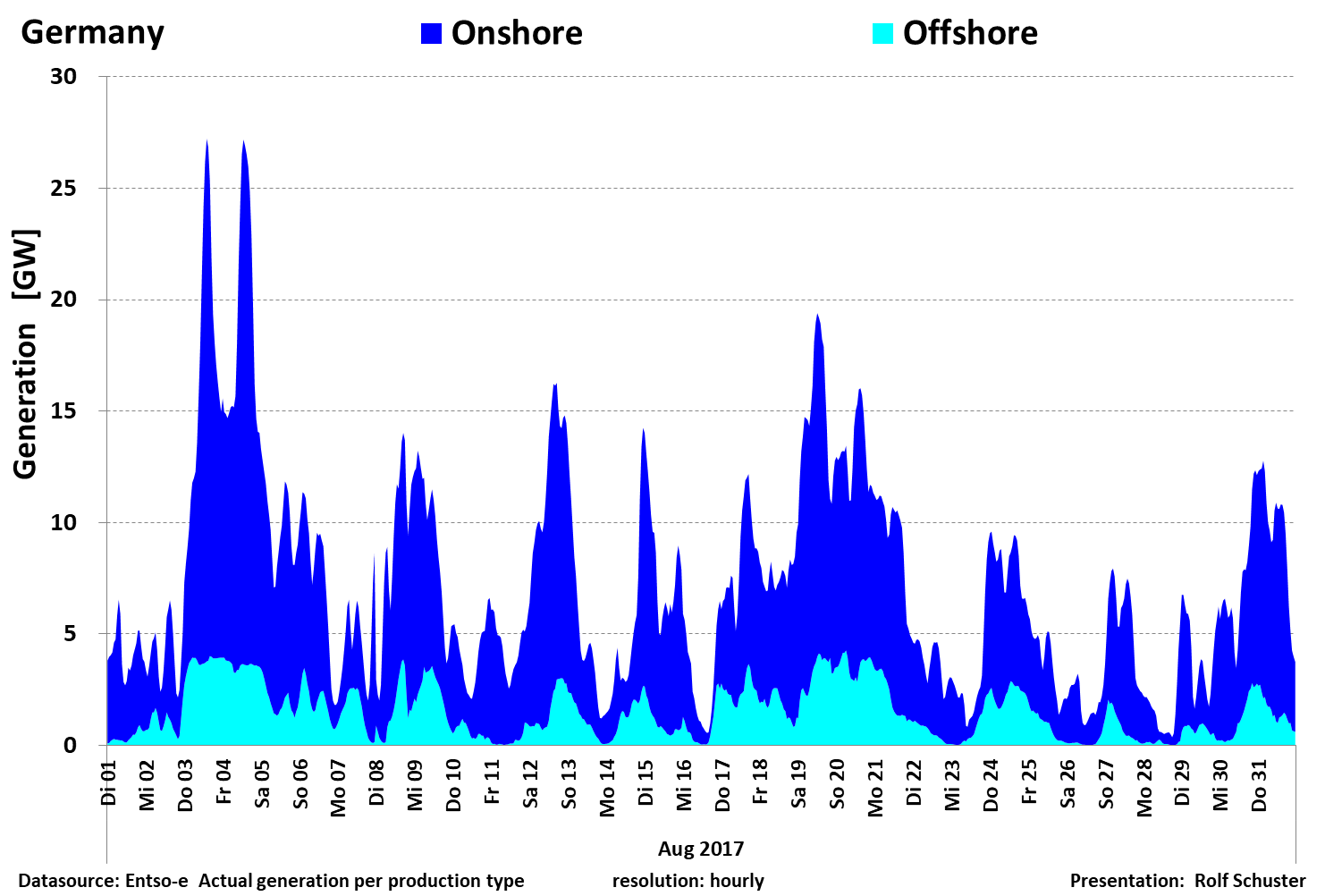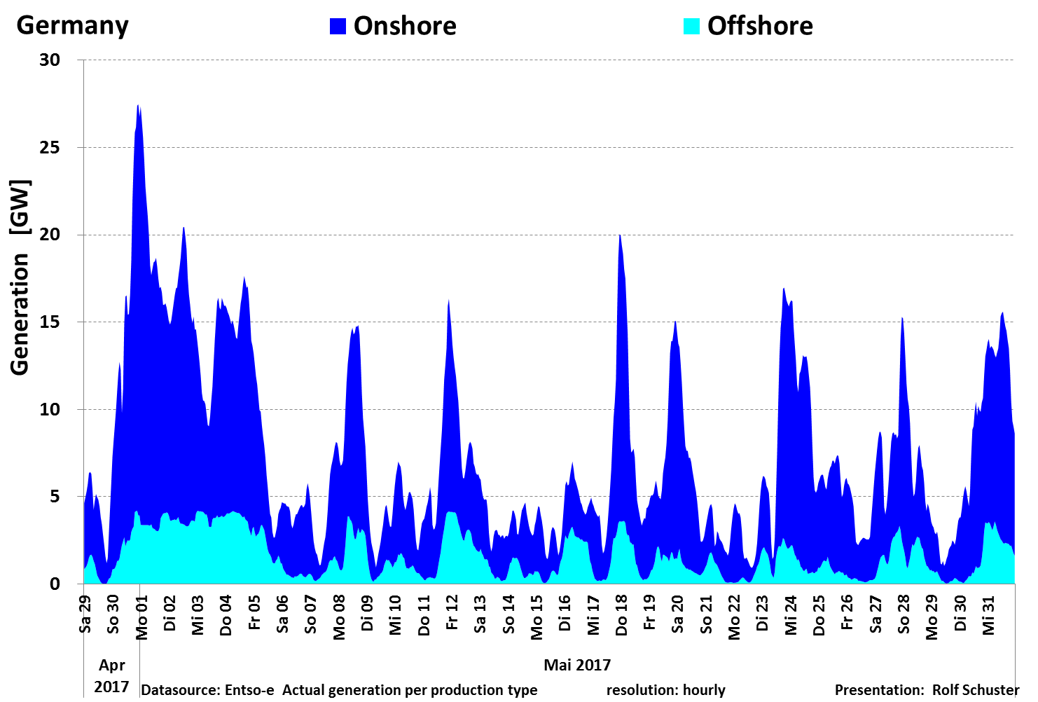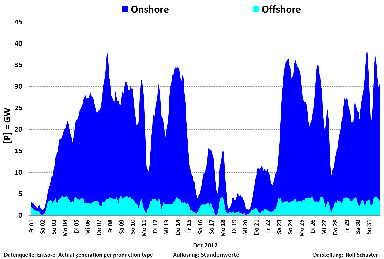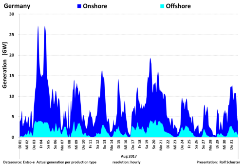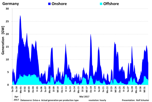 Auf dieser Seite finden Sie die Grafiken zur Nennleistung zu Ist-Einspeisung Wind On/Offshore für das Jahr 2017. Die Schaubilderlassen sich durch Mausklick öffnen.