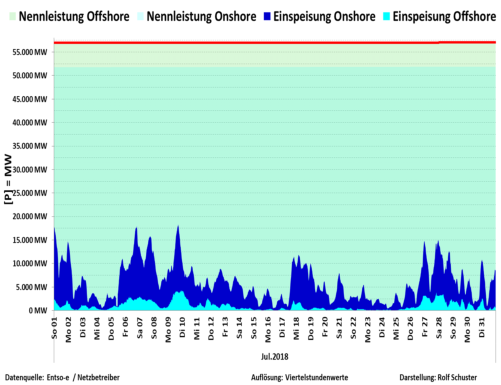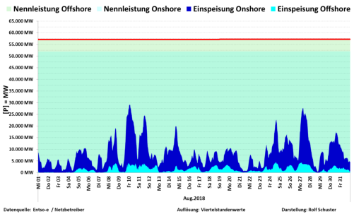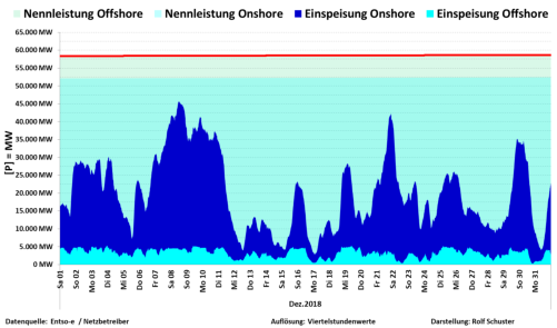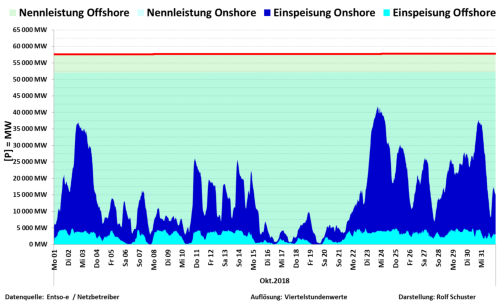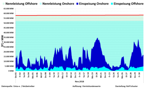 Auf dieser Seite finden Sie die Grafiken zur Nennleistung zu Ist-Einspeisung Wind On/Offshore für das Jahr 2018. Die Schaubilderlassen sich durch Mausklick öffnen.