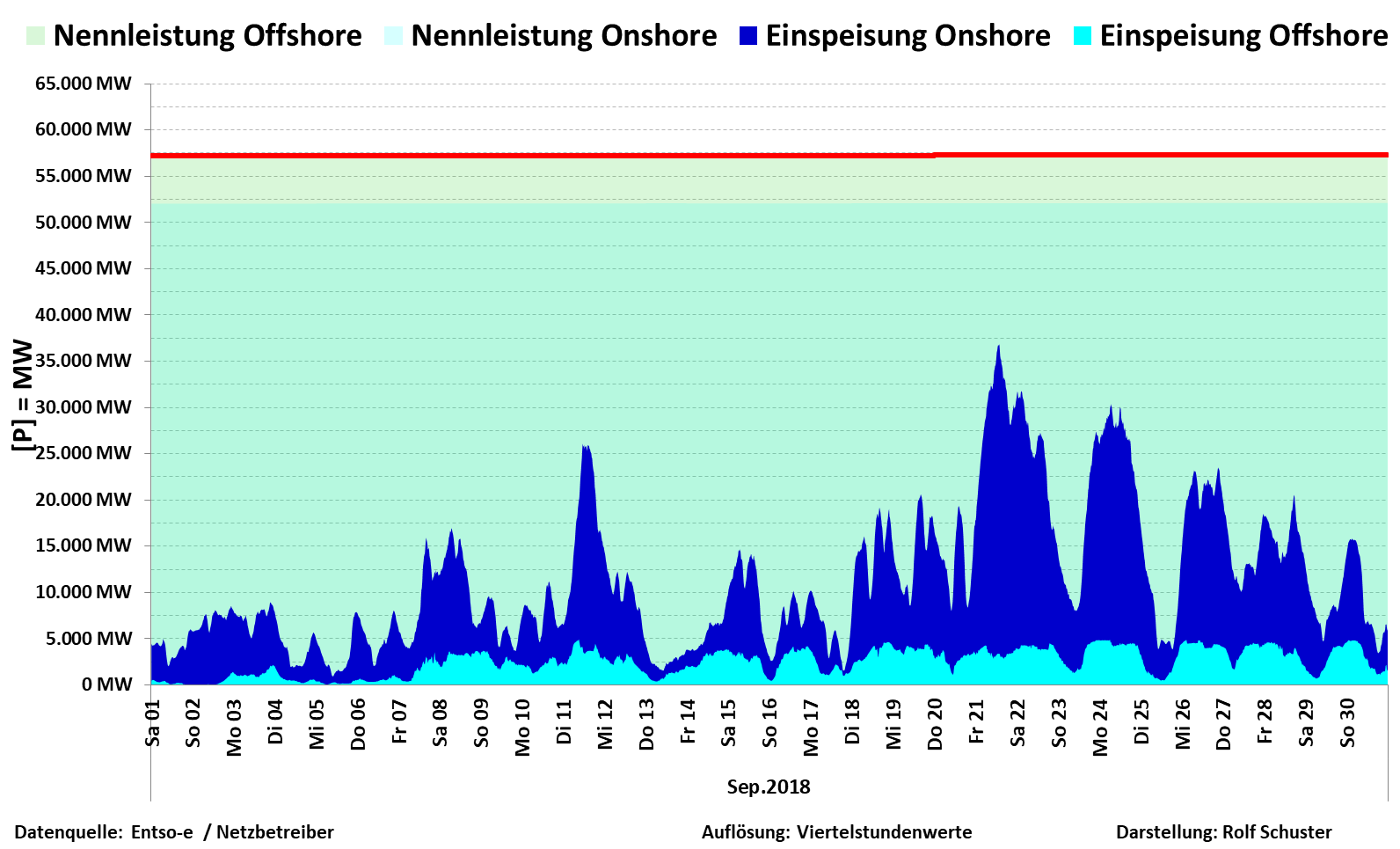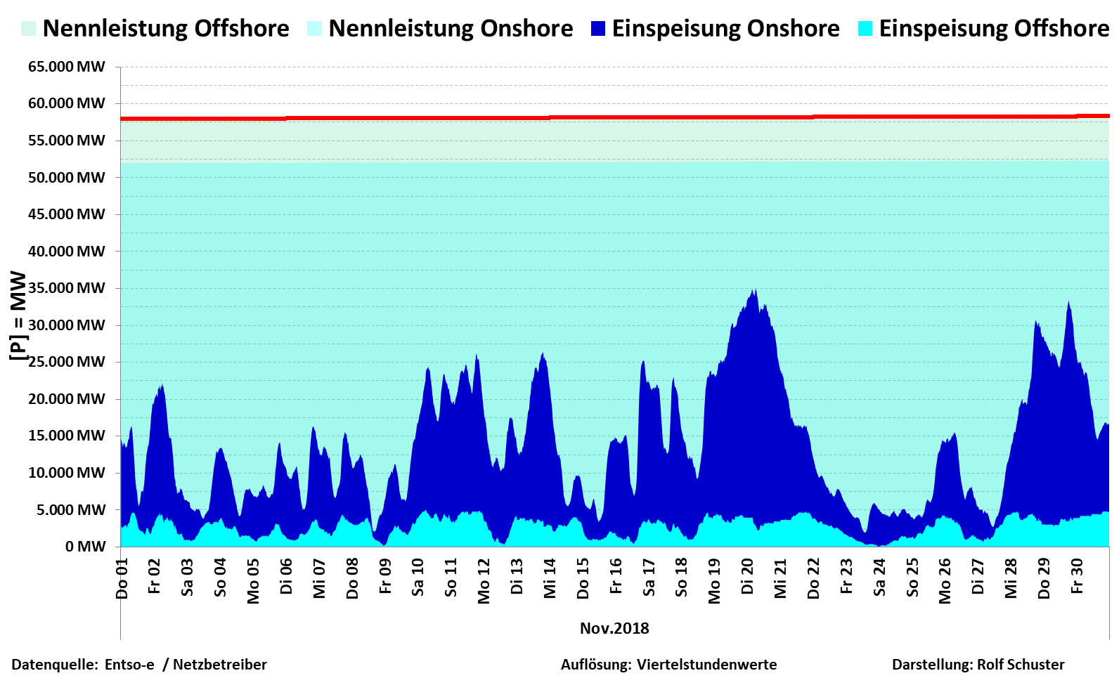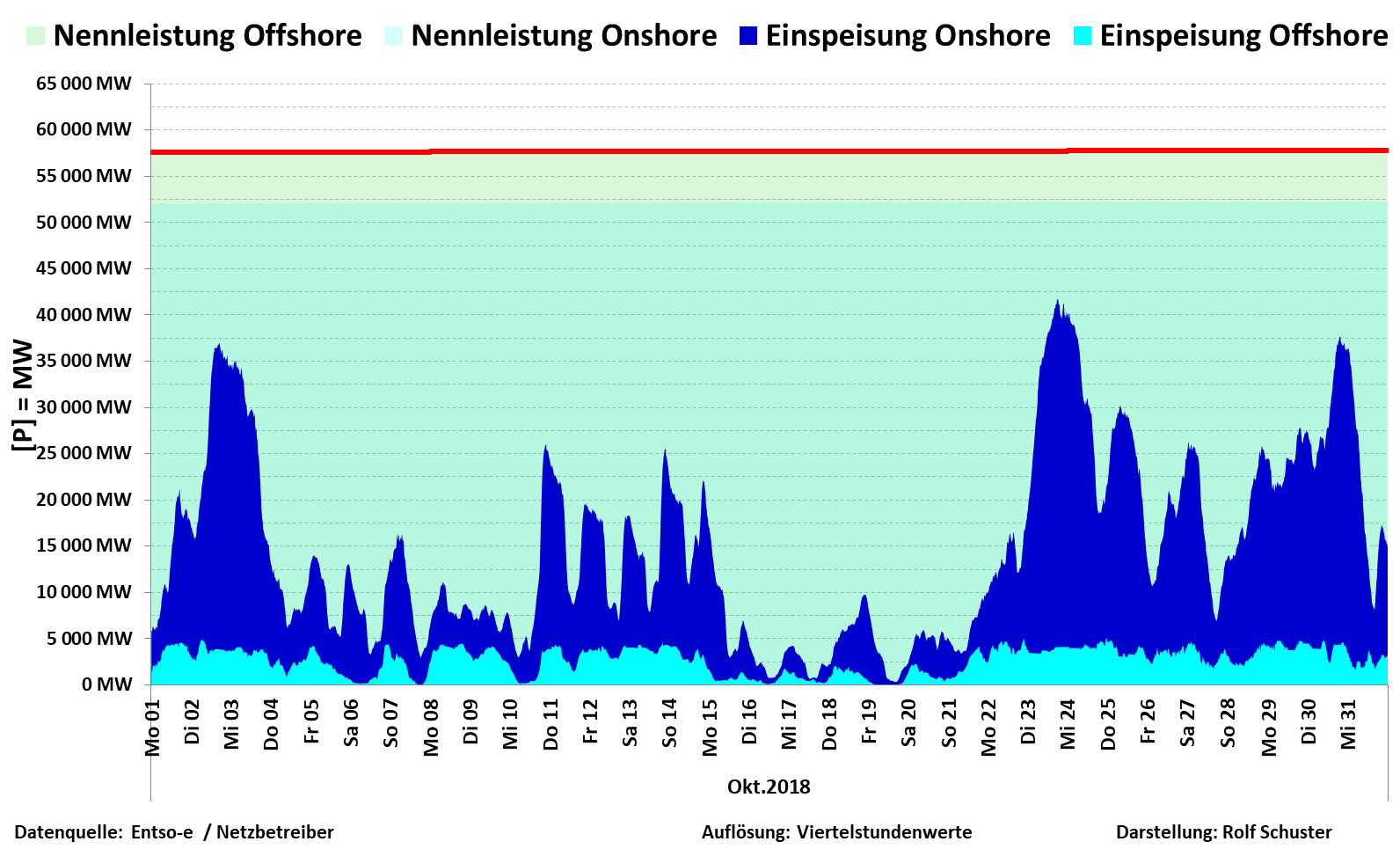 Nennleistung zu Ist-Einspeisung Wind On/Offshore