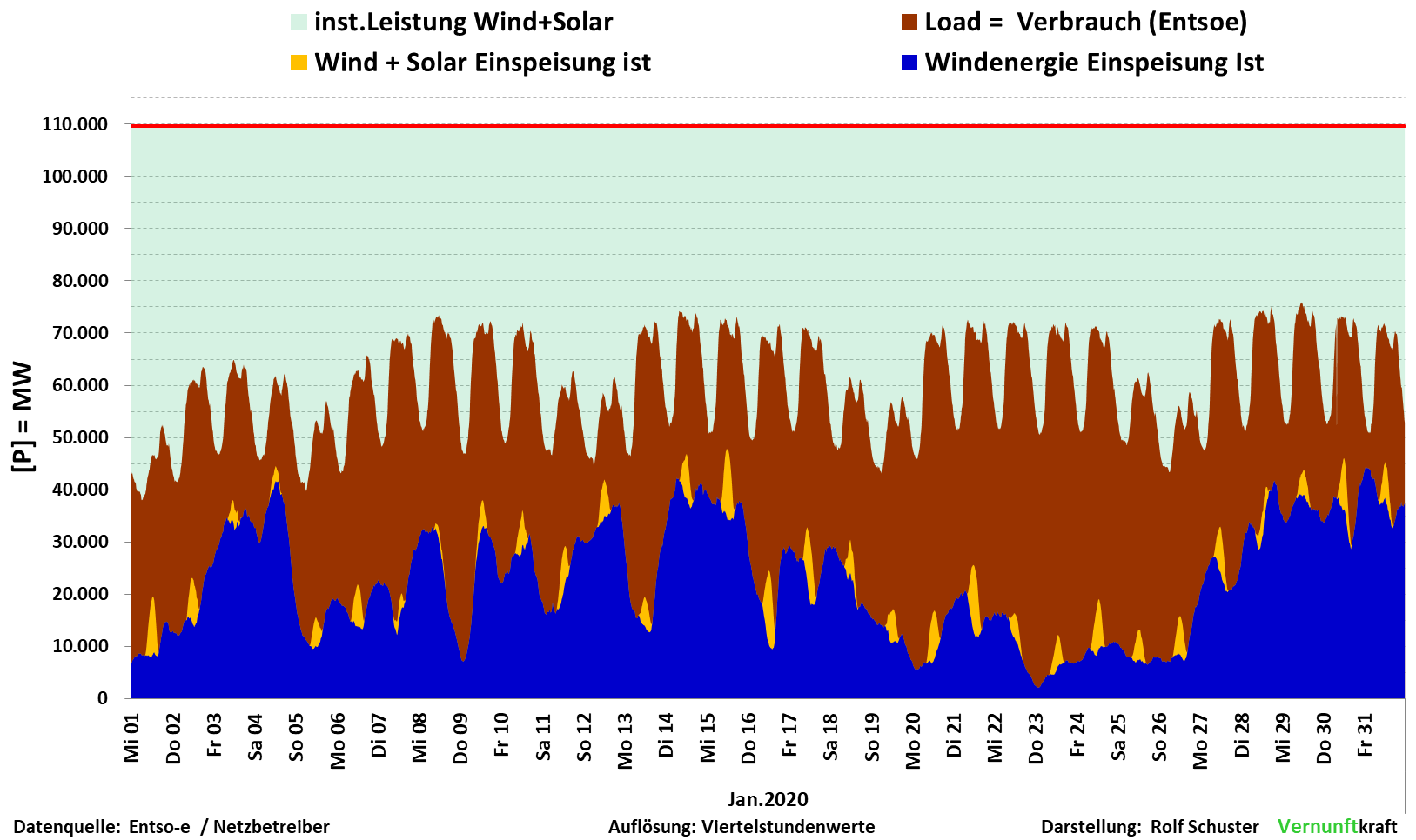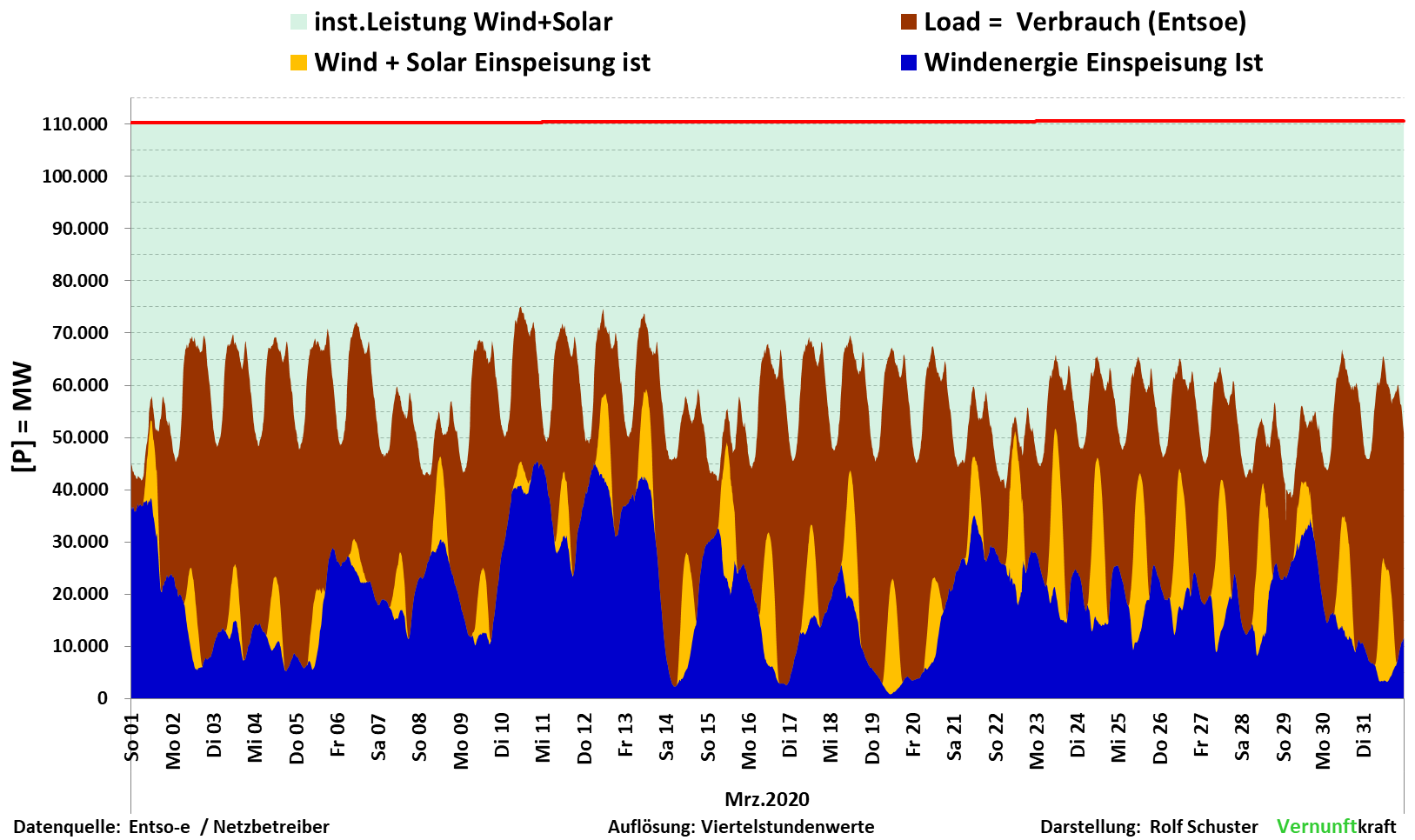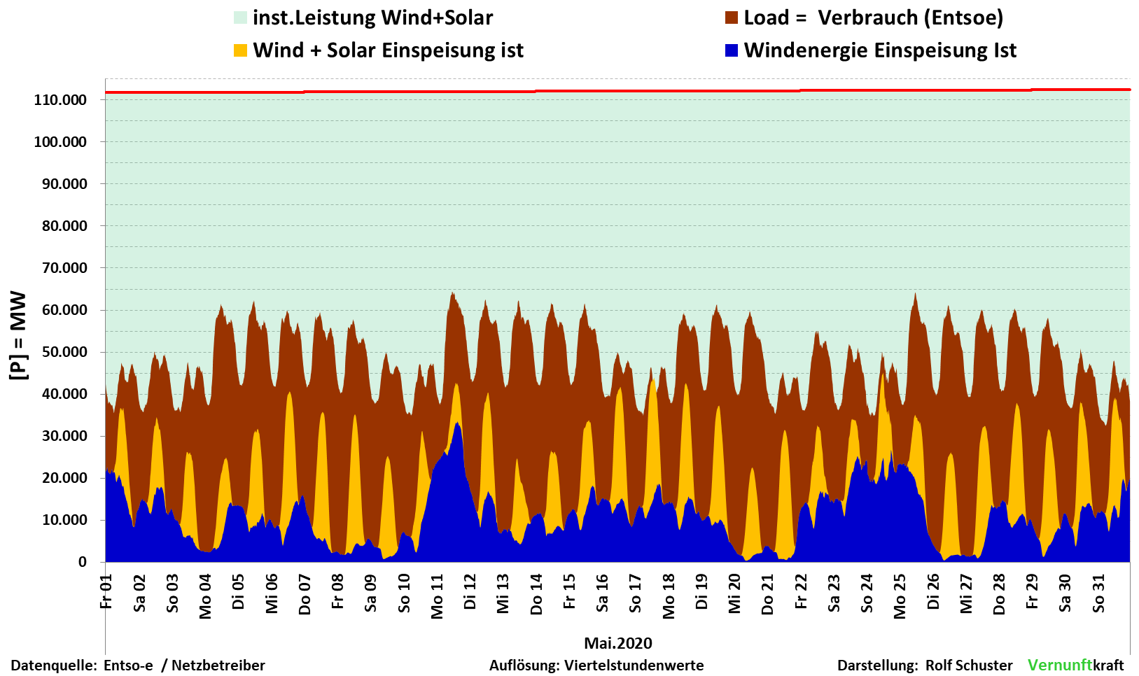 Anteil an Wind- und Solarstromproduktion aber damit stieg.